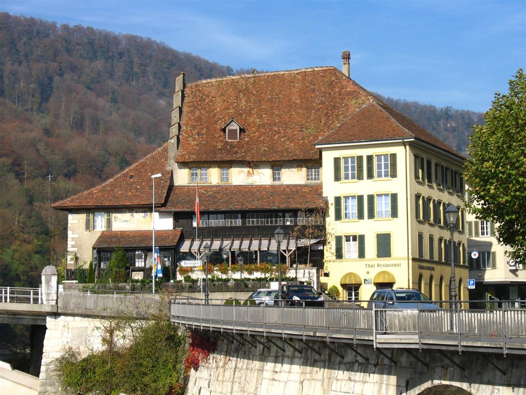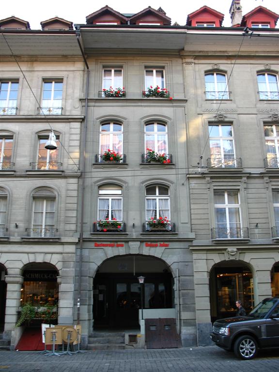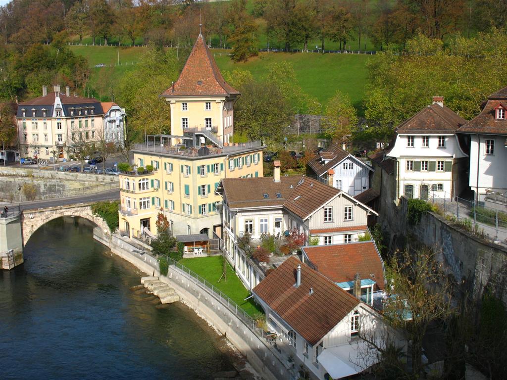 at the bottom of the hill on the Nydegg Bridge - that's the original Lindt Chocolate factory, now condos