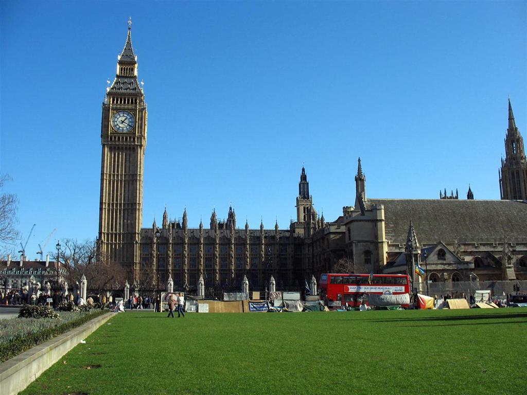 Abraham Lincoln across from Parliament and Big Ben, and right next to Westminster Abbey
