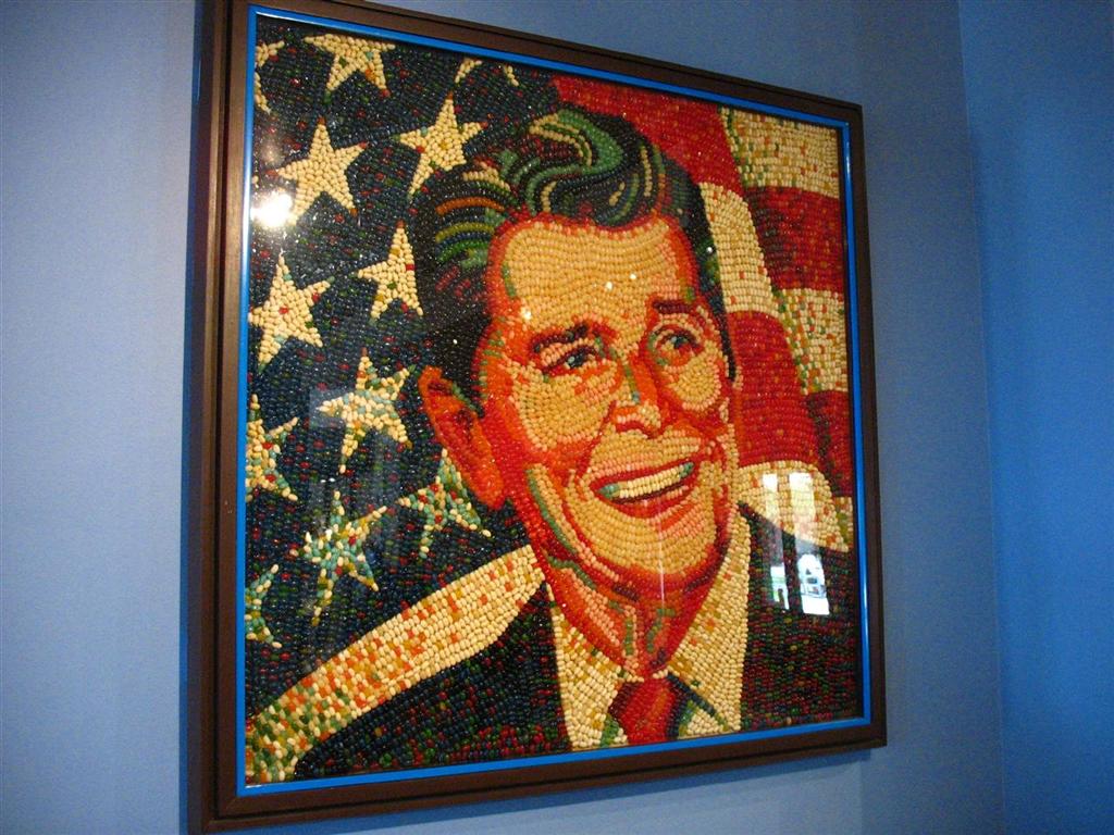 portrait done in jelly beans which, unlike ketchup, were never declared a vegetable so poor kids getting subsidized lunches could get two veggies
